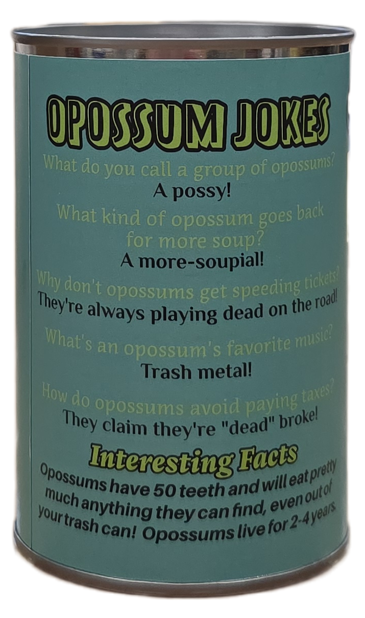 Our cans are loved by all, children and adults alike. Few people can say they've received a Canned Opossum before!